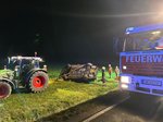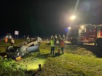 Am späten Montag Nachmittag wurden wir zu einem “Einsatz nach Verkehrsunfall” alarmiert. Bei unserem Eintreffen an der Unfallstelle konnten wir einen PKW vorfinden, der auf dem Dach in einem Feld lag. Ein PKW-Lenker war rechts von der Straße abgekommen und gegen einen Wasserdurchlass geprallt. Der PKW schlug darauf hin in einem Feld auf und kam auf dem Dach zu liegen.